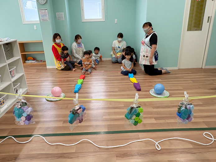 今日は待ちに待った遠足の日でしたが、あいにくの雨天のため室内で行事を行いました。