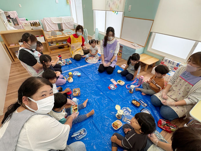 そしてお楽しみのお弁当タイム!みんなで輪になっていただきました。
