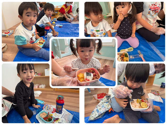 みんなそれぞれ好きな具を貼って、美味しそうなお弁当が完成しました!